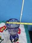 This vintage Bohemian cobalt blue cut-to-clear crystal glass vase stands at 9. inches tall and features a floral theme. The hand-blown production style and technique give it a unique and artistic appeal. The unmarked brand adds to its mystery and charm, making it a standout decorative piece for any space.