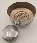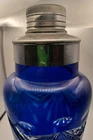 This Vintage Bohemian Cobalt Blue Cocktail Shaker with original chrome topper is a unique and collectible piece from the 1920-1949 time period. The piece is marked "Japan". The height of this hand blown shaker is 9 inches to top of glass and 11 inches with topper on. Some bubbles and marks on glass, and clear spot on bottom, generated during creation process. Some aging of chrome topper and very minor marks from years of use. No cracks or chips. Very nice. Only had 1 owner. See photos.