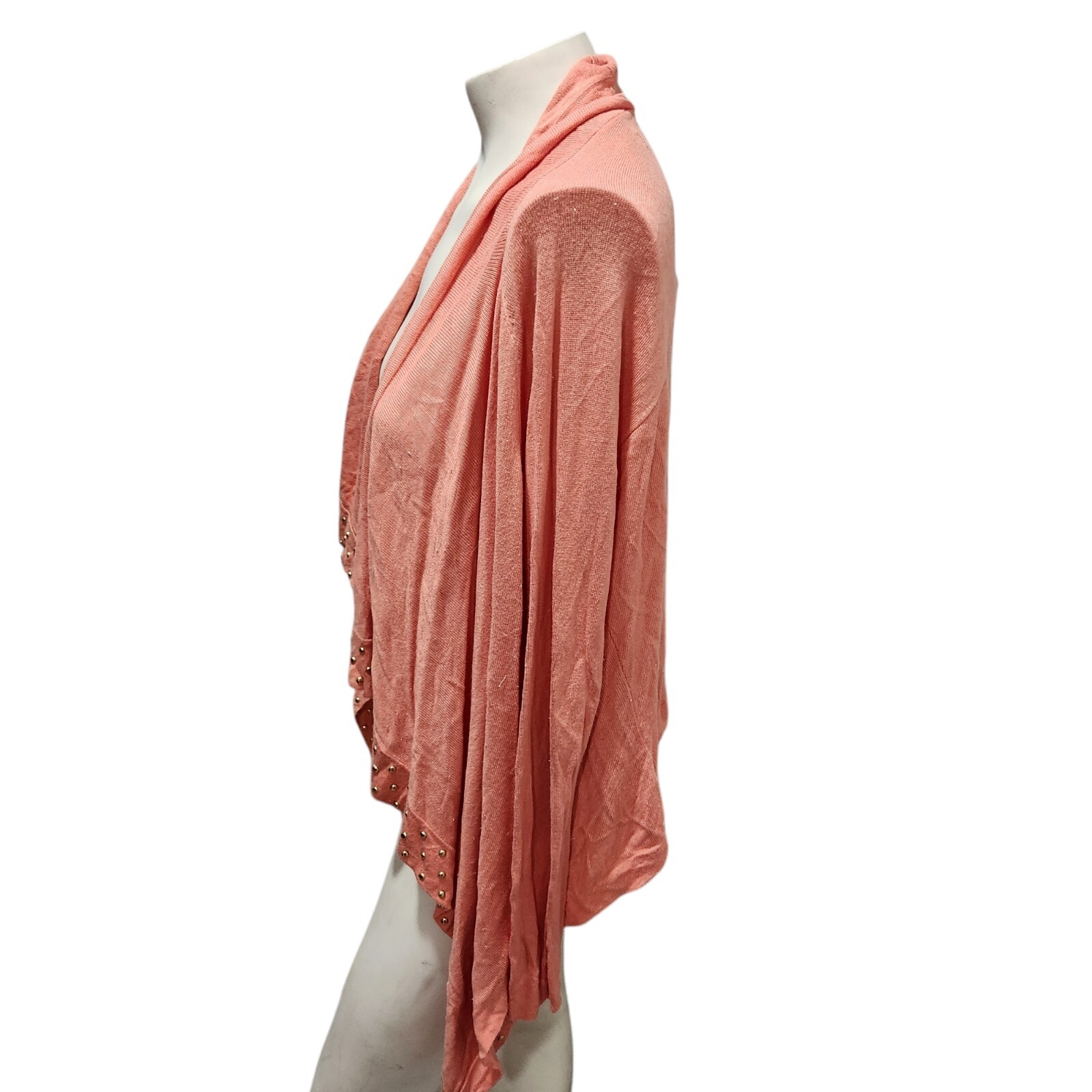 Brand: Cache Size: Large Color: Orange, Cantaloupe Style: Flowy orange oversized cardigan with gold stud detail Condition: Preloved, good used condition, no rips, flaws or stains