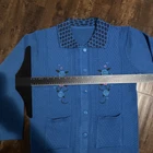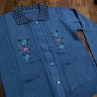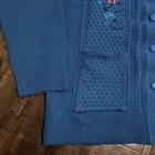 Wrap yourself in the eclectic charm of a Full Knit Button-Up Sweater, a vintage jacket that embodies a blend of bohemian flair and classic comfort. The piece features a rich blue color accented with a floral pattern, lending an air of nature-inspired aesthetic with a touch of the Wild West. Its kimono style and collared design offer a versatile layering option, suitable for a variety of occasions. Crafted from durable polyester, this knit jacket is designed for unisex adults and comes in a regular size large. The sweater is replete with features that evoke a range of themes, from the vibrant hues of the 80s to the tranquil imagery of tropical landscapes, making it an interesting addition to any wardrobe.