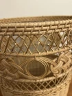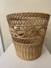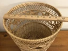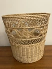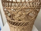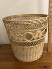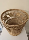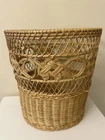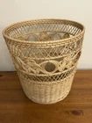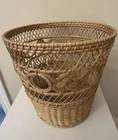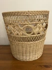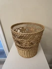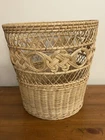 Vintage Boho Natural Wicker Rattan Waste Basket Trash Can Planter Approximately 10.5X10” Vintage condition- refer to pics Some areas of breaks to wicker cane Around top edge