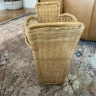 Vintage Boho Wicker Rattan Magazine Holder Great vintage piece! Age appropriate signs of wear, overall great vintage condition. Item comes from smoke free and pet free home Approx dimensions 15.5” long 8.5” wide 12” tall Vintage Boho Mcm Mid century Hippie Farmhouse Wicker Rattan Magazine holder Basket