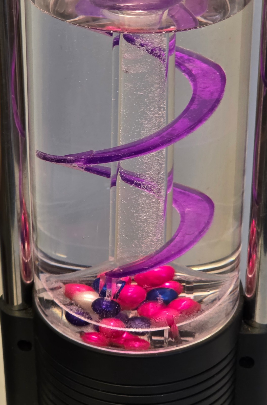 Vintage Boxed Kenart Spiral Ball Water Lamp Model J461 Helter Skelter Purple 90s Measures 14.75" tall Lamp does turn on. Pearl balls do move around at the bottom but do not rise up to the top as they should. Not sure if the water level should be higher. This lamp is being sold as is for parts or repair. International buyers please note that any additional duties that may apply are the responsibility of the buyer. These fees will be collected by the freight shipper. Contact your local customs office for more details of fees