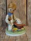 This vintage figurine features a young boy tending to adorable rabbits, surrounded by detailed flowers. A delightful piece for collectors or as a charming addition to farmhouse or cottage decor. Please review photos for details. Sold as-is.