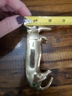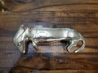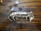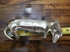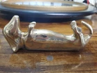 This brass figurine features a sleeping Dauschund dog measuring 5.5 inches in length. The solid brass material makes it a durable and heavy piece, perfect for adding a touch of charm to any collection. The intricate details of the design showcase the craftsmanship of the piece, making it a great addition for collectors or animal lovers alike.