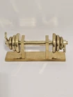 Vintage Brass Barbell Weight Set Paperweight Miniature SH2. Condition is Used. Shipped with USPS Ground Advantage.