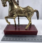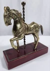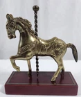 This vintage brass carousel horse figurine is a stunning addition to any collection. Crafted in Korea, it stands 5.5 inches tall and is made from high-quality brass. The intricate details of the horse's mane and armor are impressive, making it a true work of art. Perfect for collectors of metalware and brass, this figurine belongs to the Collectibles category. Its unique design and excellent craftsmanship make it a valuable piece. Display it on a wooden stand to enhance its charm and elegance.