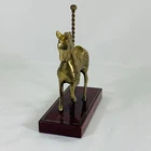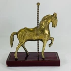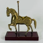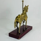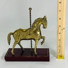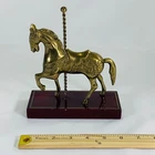 This vintage brass carousel horse figurine is a beautiful addition to any collection. Crafted with intricate details, this horse stands 7 inches tall on a wooden stand and has a 6-inch base. The horse is made of high-quality brass and has a stunning appearance that will catch the eye of any collector. This figurine is perfect for those who love horses and want to add a unique piece to their collection. It is a great gift for anyone who appreciates vintage items or has a passion for animal memorabilia. This horse is a must-have for collectors and will be a treasured part of any collection. Any imperfections are shown in photos. We can do combined shipping! See what else you'd like from our store! 💙Retro and Beyond