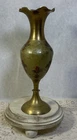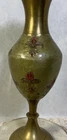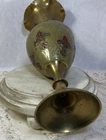 Vintage brass and green enamel fleur de lis vase- stands 7 3/4” tall. Beautiful red fleur delis. Ruffled edge. Check out our other listings for other vintage finds. Thanks for looking and give us a follow!