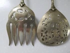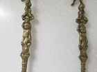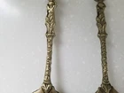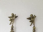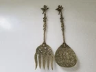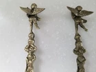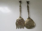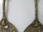 Vintage Ornate Brass Cherub Serving Spoon & Fork. Cherubs on top of handle, down along handle and face of spoon and fork. 10" Tall. Good Pre-owned Condition. Please view photos.
