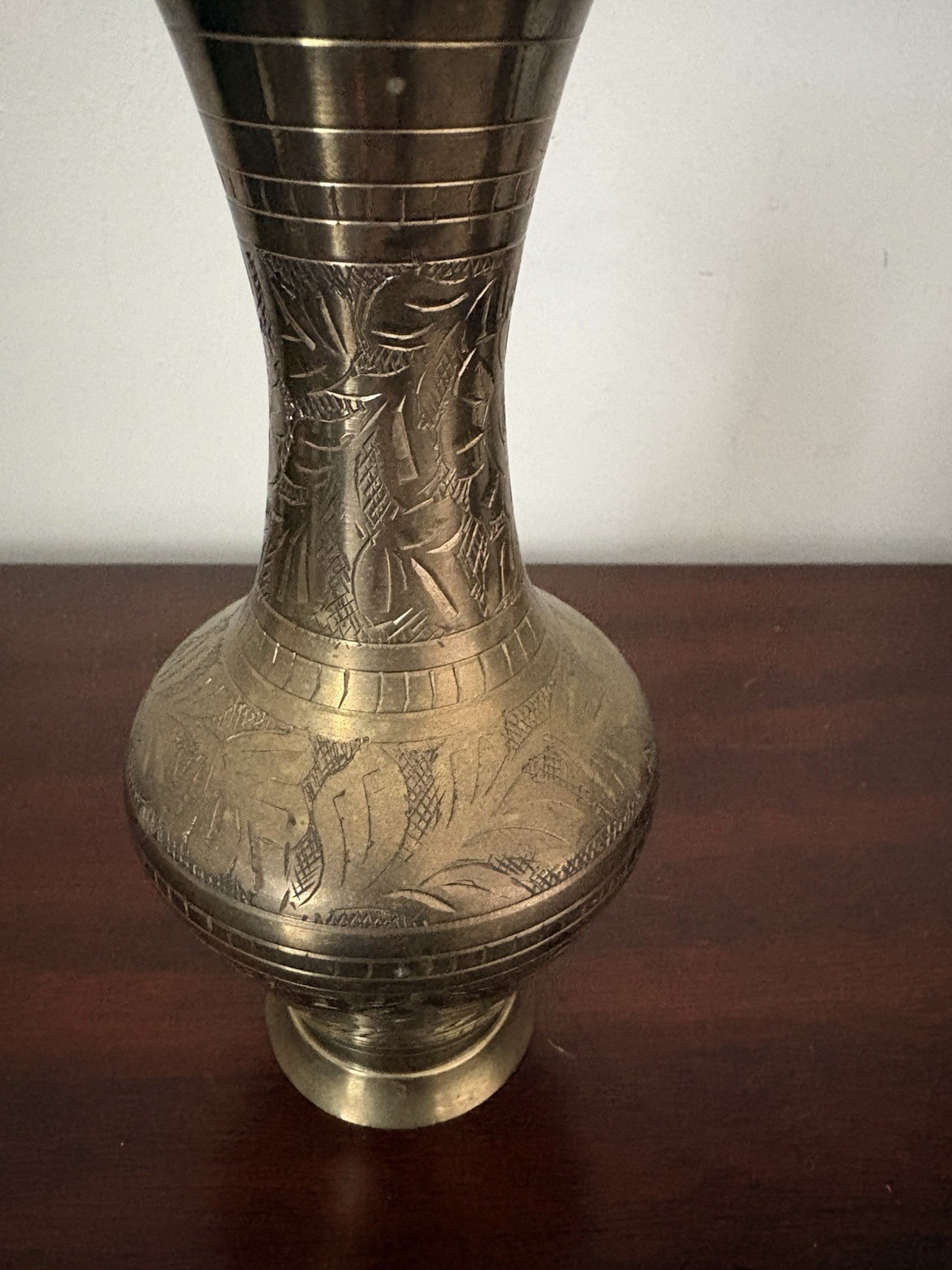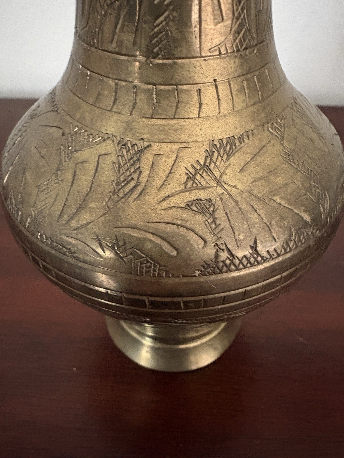 Vintage Brass Vase Indian Hand Engraved Floral Patterns - Decorative Please feel free to make an offer on anything that i have listed. Everything must go. Cross posted. Please see my about me info as to why i sell & am downsizing. Thanks for viewing— take care!
