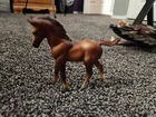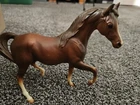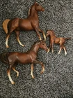 The vintage Breyer Classic Arabian Family #3055 in Chestnut is a model horse set from the Mini Whinnies series. Made in the United States by Breyer, this collectible features a horse family with intricate details that are typical of the Breyer Classics line. The set includes Arabian horses in a chestnut color, showcasing the craftsmanship and artistry that Breyer is known for in the world of model horses.