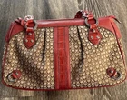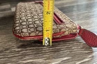 This vintage Brighton top handle bag is a stylish and versatile choice for various occasions such as travel, weddings, parties, and more. The bag features a unique red and brown exterior with accents like buckle and button details, making it a standout piece. It also includes a matching wallet and detachable crossbody strap for added convenience. The fleece fabric lining, inner pockets, and key clip offer practical functionality while maintaining a classic and elegant look. Perfect for those who appreciate designer quality with a touch of western and country-inspired charm.