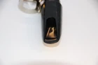 Brilhart Alto Saxophone Mouthpiece Model/Specs: Ebolin 4* Material: The Brilhart Ebolin alto saxophone mouthpiece iscrafted from durable synthetic resin, designed to mimic the tonal qualities ofhard rubber. Characteristics: Known for its warm, balanced tone and smooth response, it is a favorite among jazz and classical saxophonists. Maker info: Arnold Brilhart, a renowned mouthpiece designer, introduced the Ebolin series as a versatile option for professional and student musicians alike. Condition: Vintage. Used. Several scratches including on the tip. A dent in the bite plate was filled years ago but is quite visible as the color doesn’t match exactly. With the scars this definitely exudes that historical “player’s mouthpiece” vibe. I am happy to include the mouthpiece cap and ligature which might even be original.