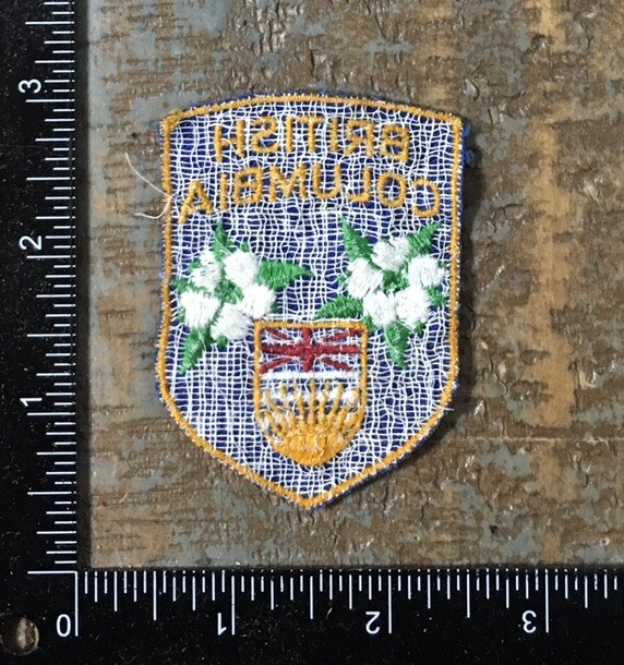 Vintage British Columbia Flag Patch with Pacific Dogwood Flowers Canada Souvenir