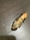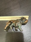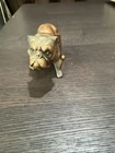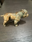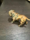 This vintage figurine statue is a must-have for any animal lover's collection. The mid-century modern style bronze and copper bulldog figurine is cast with exquisite attention to detail, measuring approximately 4.5 inches in length. The sculpture captures the essence of the bulldog subject, making it a perfect addition to any decorative collection. The figurine is made from high-quality materials, including bronze and copper, which adds to its durability and longevity. Whether you're a collector or a fan of mid-century modernism, this sculpture is sure to impress.