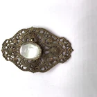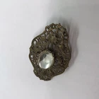 Pretty brooch shows some wear from use the underside of the cabochon focal looks cloudy from age please see pics There is a measuring tape in the pics for size reference questions? please ask before purchasing Thanks for looking! #ze4