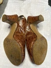 See photos for minor wear on heels little to nowhere on seeming excellent condition. Shoe size is approximate measure 8 1/2 inches from toad heel. Please ask questions prior to purchasing.