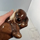 Vintage Brown Ceramic Sleeping Puppy Figurine Statue Signed Dusty