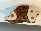 This vintage brown Dachshund Weiner Dog ceramic planter trinket dish MCM figurine is a charming collectible featuring a Dachshund figurine in a planter design. It is made of porcelain and showcases a Mid-Century Modern aesthetic. The Dachshund breed is depicted in a lifelike manner, making it an appealing piece for dog lovers and collectors alike. Its dual functionality as both a decorative figurine and a planter or trinket dish adds versatility to its usage. Measures 9 inches long, 6 tall, planter portion is 3 inches deep. Excellent condition no flaws