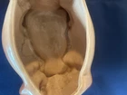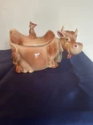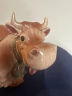 This vintage Brush McCoy cookie jar with lid is a charming addition to any farmhouse-style kitchen. The jar features a unique design with a brown color and an animal-shaped lid. It has one compartment and is made of ceramic material. The item measures 13 inches in length, 8.5 inches in height, and 6.5 inches in width. The jar is an original piece from the 1950s and is not handmade. It is a great collectible item for those interested in antique pottery. The item comes as a set of two with another item included in the package. It is not an antique piece, but it is a vintage item with a model name of Brush McCoy Elsie W10.
