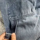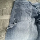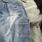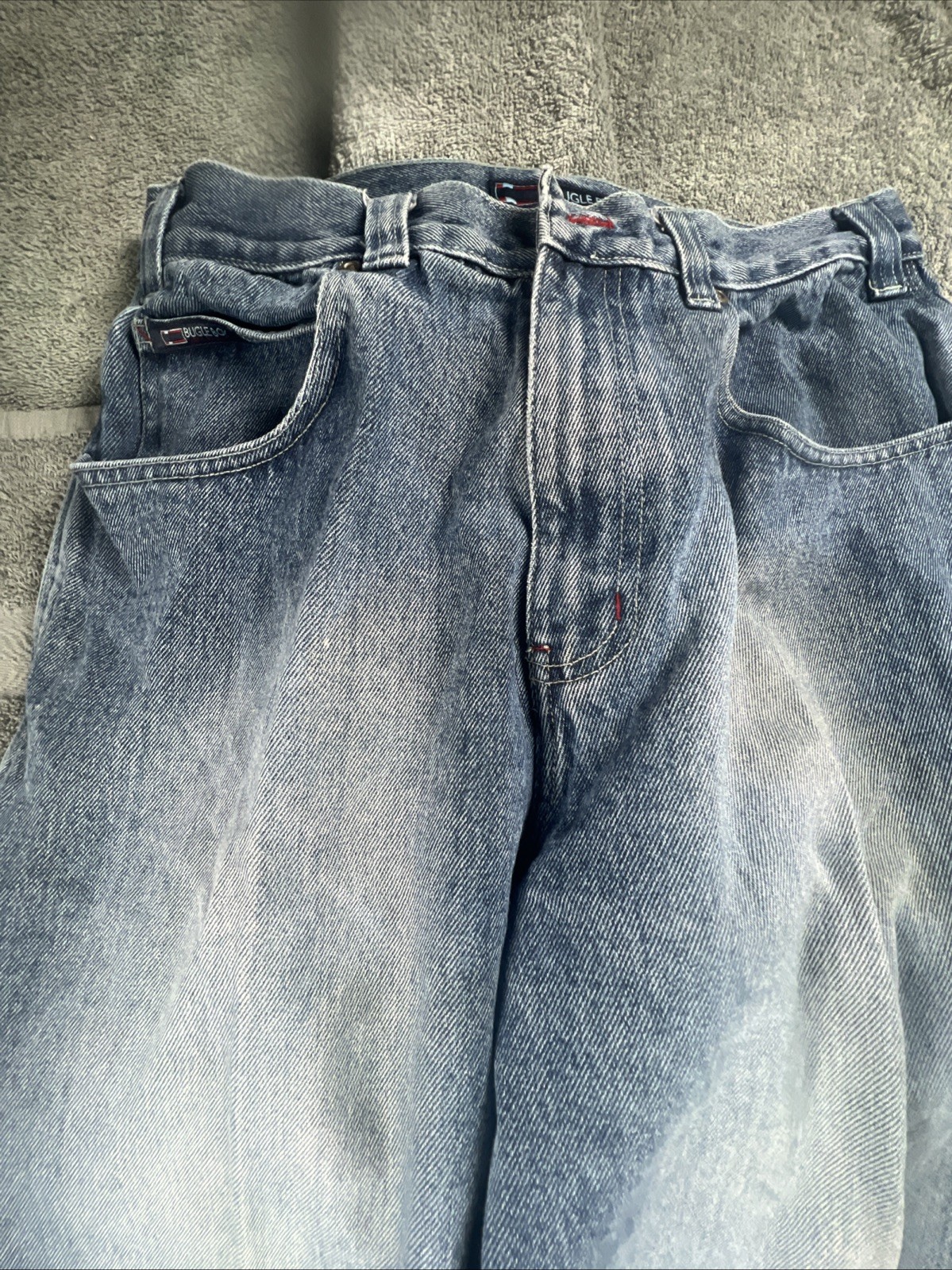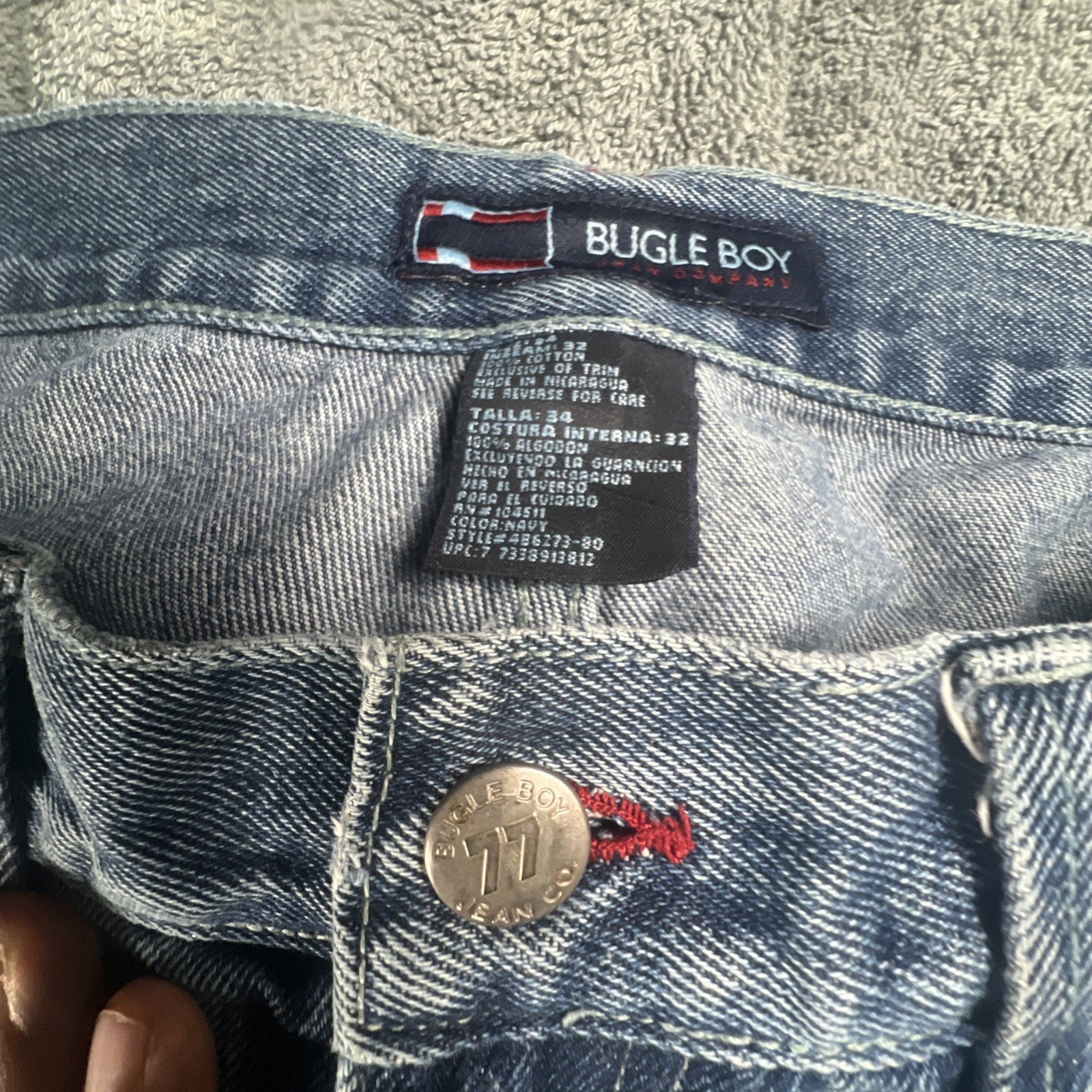 The Vintage Bugle Boy Baggy Skater Fit Carpenter Blue Denim Jeans in size 34x32 offer a classic grunge-inspired style perfect for those who appreciate 90s hip hop fashion. Made from cotton denim fabric with a medium wash, these jeans feature a straight leg fit and a regular waist size. The iconic Bugle Boy brand adds a touch of nostalgia to this wardrobe staple, making them a standout piece for any man looking to channel their inner skater or punk rock vibe.