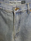 Elevate your denim game with these vintage Bugle Boy jeans in a light wash. The classic fit and wide-leg style make them perfect for any occasion, while the 34-inch waist size and 32-inch inseam ensure a comfortable fit for men. The fabric is made of high-quality denim and features a grunge-inspired 90s hip hop theme, making them a must-have for any fashion-forward individual. These jeans are perfect for those looking for a unique addition to their wardrobe and are sure to turn heads.