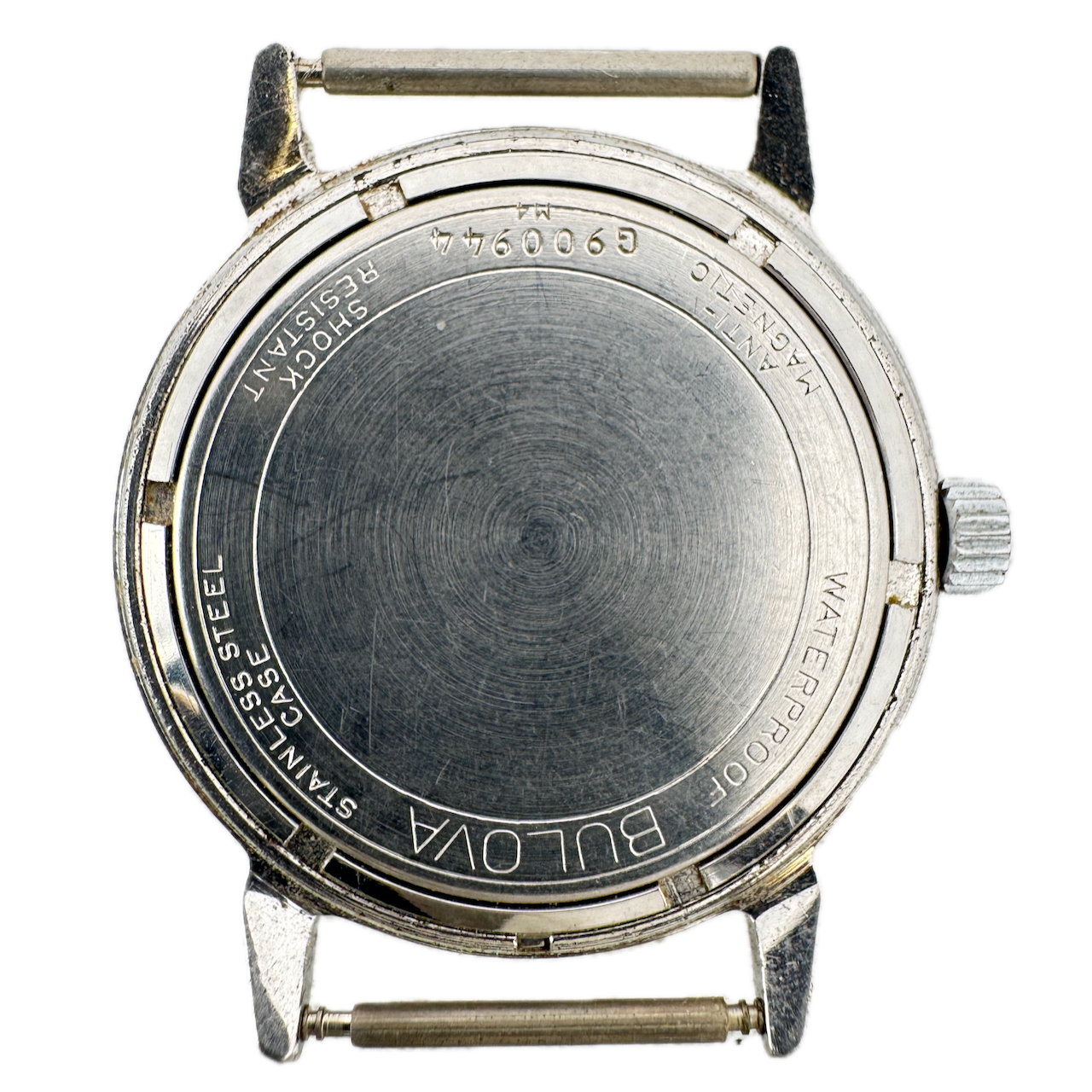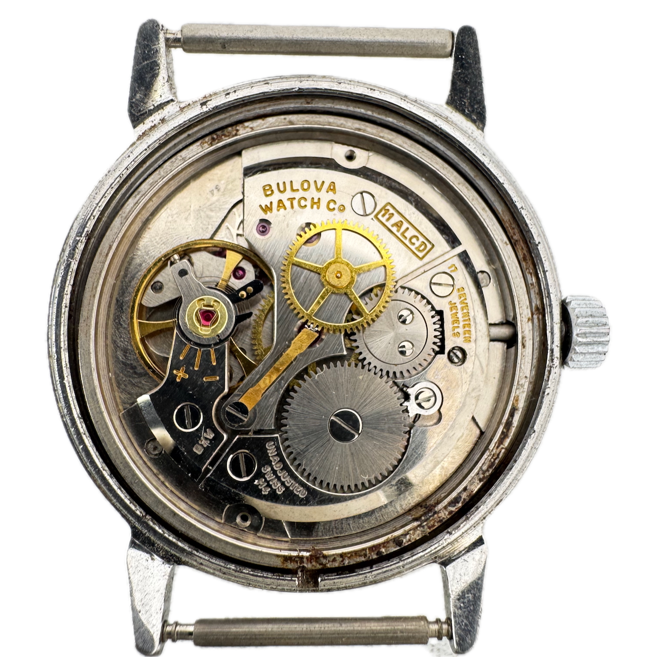 Vintage 33mm Bulova 2519 Day Men's Mechanical Wristwatch 11ALCD Swiss Steel Product Description Item: Wristwatch Brand: Bulova Model: Day Reference: 2519 Movement: Mechanical Case Material: Stainless Steel Production Year: 1964 Country: Swiss Jewels: 17 Jewel Gender: Men's Caliber: 11ALCD Size: 33mm Product Measurements Diameter: 33mm Lug Width: 18mm Lug to Lug: 39mm Thickness: 9 mm Product Condition Overall Condition: Fair, overall condition for its age. Functions: Not running but the balance complete is in good condition. This item has not been fully inspected. Internal components may be damaged or missing. No guarantees are made regarding completeness or functionality of the movement. Case: There are scratches on the case. Dial: The dial has discoloration. About the brand: One of America’s foremost manufacturers, Bulova was founded in the late 19th century by Joseph Bulova in Queens, NY. The brand quickly established itself as a maker of high quality watches, and became fully ingrained in American culture - even producing the first ever television commercial. Known for models like their Devil Diver, Sea King, and the later Accutron models, Bulova is something of the un-sung hero of American watchmaking, and a treasure trove for a vintage collector.