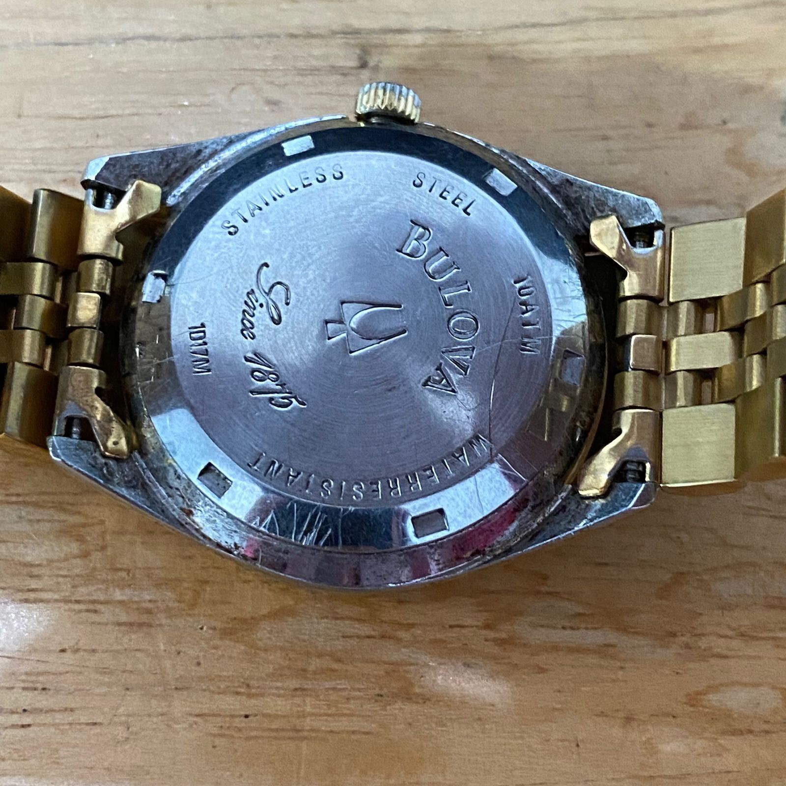 RARE MEN WATCH Bulova Gold Automatic Date White Dial Index Diamond Vintage Bulova White Dial Automatic Movement Swiss Made Diameter : 38.5 mm Include Crown Bracellet Original Good Condition Shipping , Returns and Sales Terms,: ------------------------------------------- We ship worldwide via Fedex or DHL Express We not accept Return We do combine shipping we not responsibility for Import duties, taxes, and charges , so please check in your country's customs office to determine what these additional costs will be prior to bidding or buying. Please check the item condition and photos carefully before buy or make your bid and Please don't buy/bid if you don't have any intention to buy. Once you make your buy/bid, it means that you are willing to buy it and also willing to pay for the final value and shipping cost. Any condition that is not describe on item's description but shown in photos will be considered as described. Sold As Photo, no return accepted. If you bid and win the auction means that you already understand and accept the item condition as describe above.