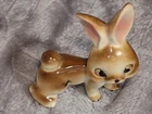 Japan Happy Smiling Animal Nick Nack Vintage Bunny Figurine Ceramic Rabbit See photos for measurements I believe it's ceramic but I can't say that for sure - it could be porcelain I consider this to be in good preowned condition Please view all photos zooming in on them as they are part of the description for you to judge condition.