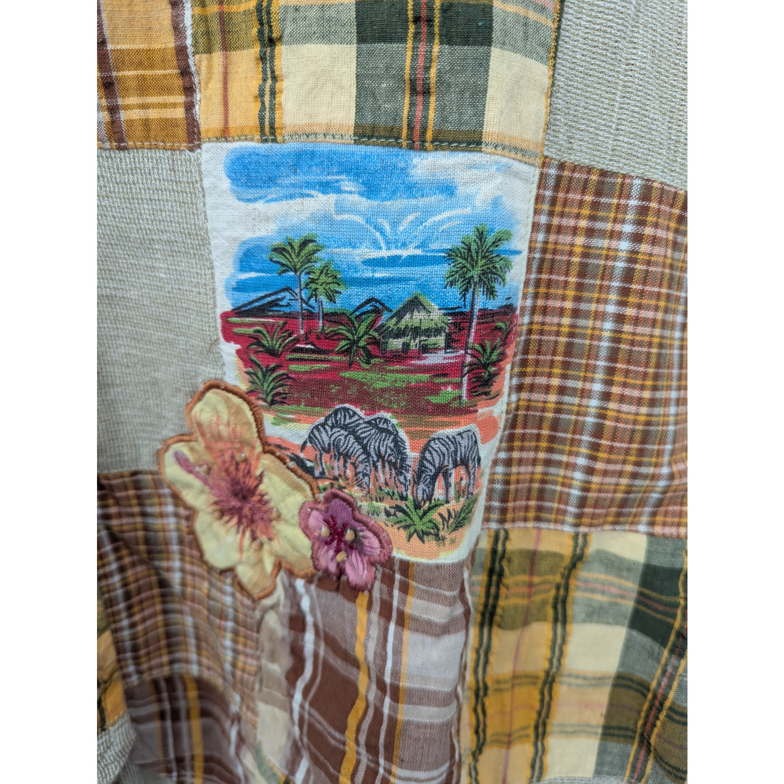 Vintage Victoria Jones vest Women's size 20W (see measurements below) 100% Cotton Made in India Features safari imagery with embroidered flowers over a motley of plaid patterns Ships in box to preserve condition Approximate Measurements Length: 25 inches Chest Width: 23 inches Is as pictured Smoke-free home Questions? Please ask SKU-JB662