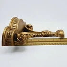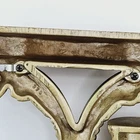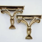 Gold tone vintage plastic wall shelves one shelf has a repair please see picture a nice sturdy solid repair the rest of the shelf and the other is in very good condition. Each shelf has mounting brakets.