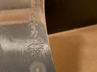 Hello This auction is for the knife shown in the photos. Never used but shows wear from storage. I can’t read what is written on the blade.