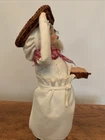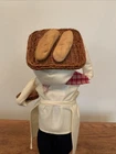 Vintage Byers’ Choice baker is in good used condition. He carries a basket of bread on his head and side. Please note there is some wear on the base. There are also a few imperfections on the top of the base. See photos.