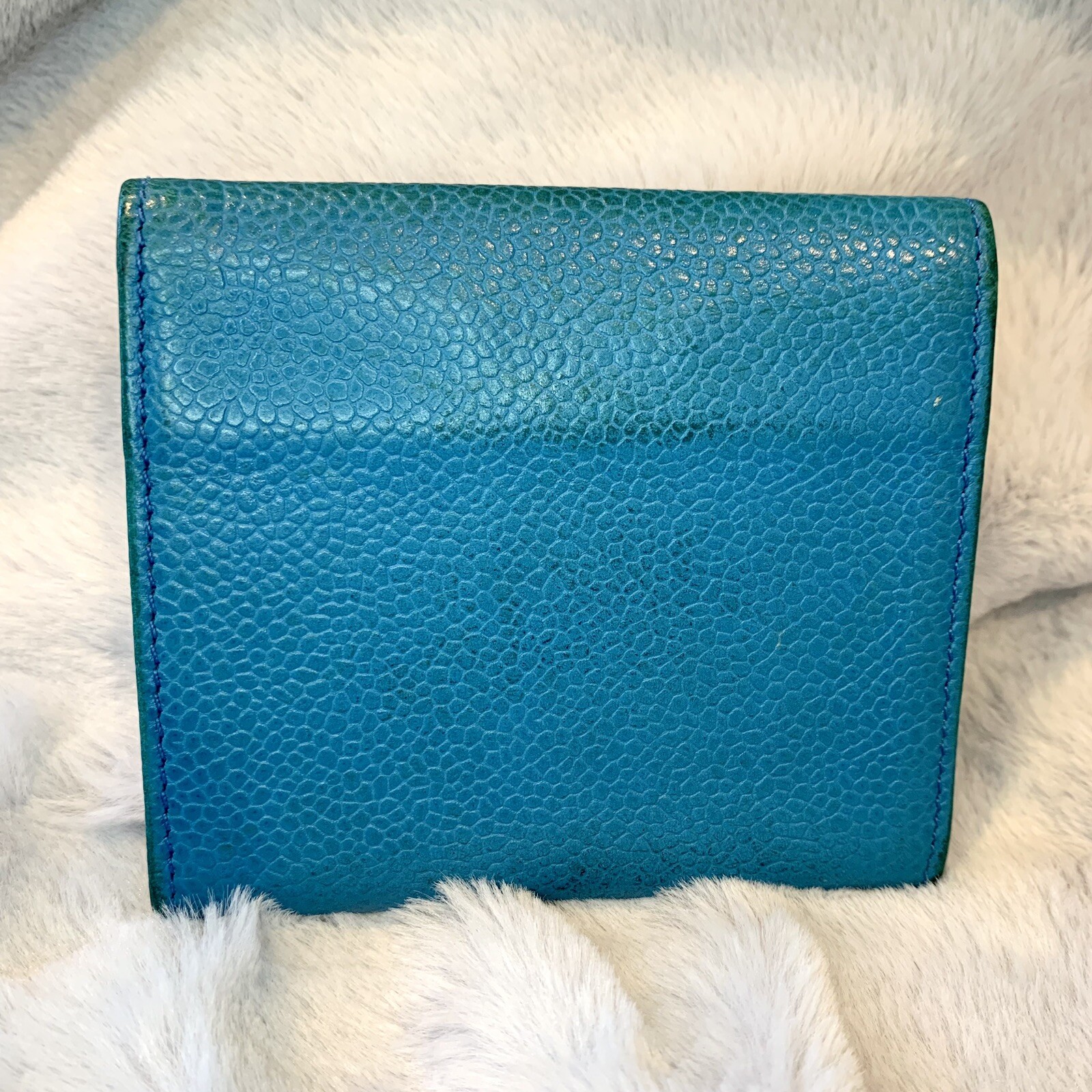 Vintage CHANEL Caviar Electric Blue Card Holder Flap Wallet. Versatile and beautiful vintage Chanel cash pouch. Originally a card holder but can hold whatever small items you wish. Super bright blue pebbled leather with classic Chanel branding monogram on the flap. In fair usable condition. Snap holds tight. Corners & edges are good. Some discoloration throughout. Fraying in the pouch. Authenticated by Anthony Velez at Bagriculture - master authenticator recently featured on NBC and CNBC.