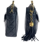 Vintage CHANEL Coco Mark Fringe Navy Lambskin Chain Bag Excellent Condition