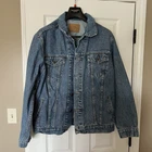 This vintage Charter Club men's jacket is a must-have for any fashion-forward man. Made with high-quality denim fabric, this mid-length jacket features a classic solid pattern and a button closure. The jacket is perfect for travel, casual outings, and workwear, making it a versatile addition to any wardrobe. The jacket has a regular fit and comes in a size L. It is machine washable and has a point collar style. The jacket also features pockets, making it practical and functional for everyday wear. With its classic style and denim theme, this jacket is perfect for any man looking to add a touch of vintage flair to his wardrobe.