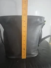The Vintage COACH Bleecker Bucket Bag 1014-346 in Very Dark Grey is a stylish and practical crossbody tote designed for women. Made from leather with a solid black exterior, this medium-sized bag features a bag charm and is perfect for casual occasions. The timeless COACH Bleecker model combines classic style with modern functionality, making it a versatile accessory for any wardrobe.