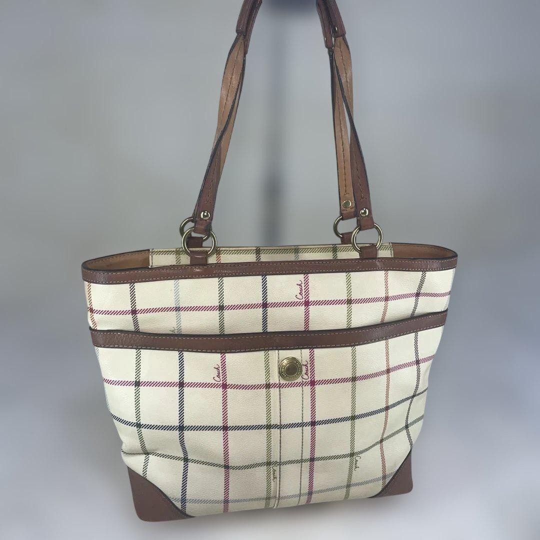 Absolutely love this COACH shoulder bag! The check pattern is stylish and timeless, while the PVC material makes it durable yet lightweight. The bag arrived in perfect condition, just as described—no flaws at all. Shipping from Japan was smooth, and the seller provided clear communication. Highly recommend for anyone looking for a chic, high-quality handbag without the retail price tag. A fantastic purchase!