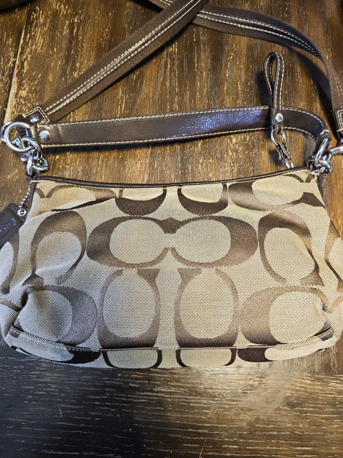Vintage Auth COACH Signature Jacquard Demi Shoulder Bag F17439 Brown Pre-owned see all photos