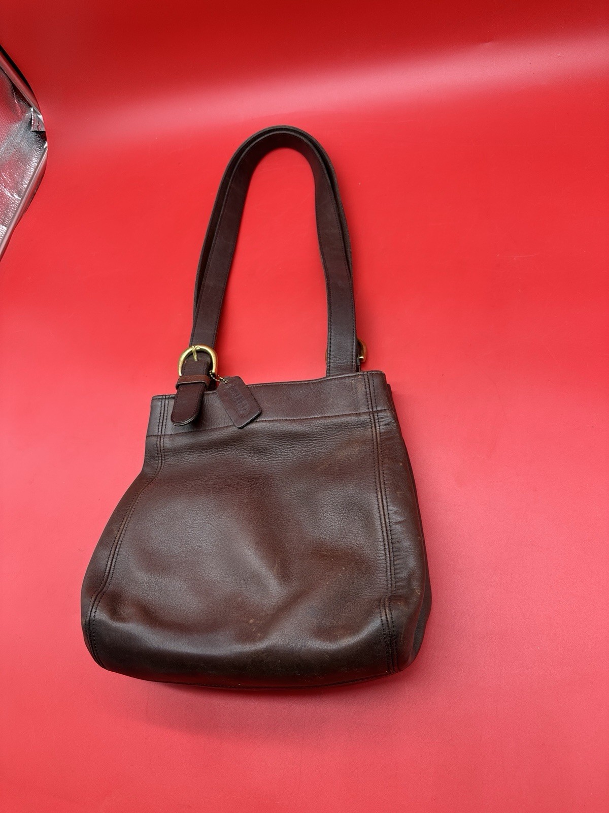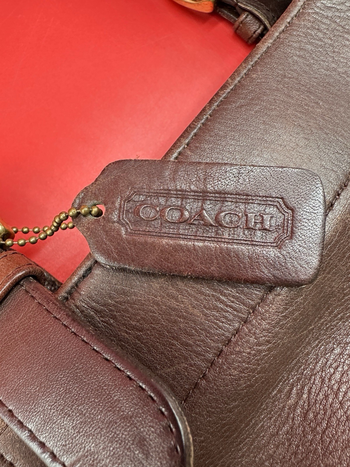 The Vintage COACH Tote Bag is a stylish and elegant handbag perfect for women. Made from high-quality brown leather, this tote features gold hardware accents that add a touch of sophistication. The brown leather handles/straps and lining color complement the exterior, creating a classic and timeless look. With ample space for all your essentials, this tote is both practical and fashionable, making it a versatile accessory for any outfit.
