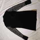 Add some unique style to your wardrobe with this vintage Cache black and white cardigan. The animal print features a cute giraffe pattern that is perfect for any animal lover. This long-sleeved sweater is made from 100% cotton, making it comfortable to wear during cooler weather. The cardigan is a size Medium and has a regular fit. It is a perfect addition to any woman's wardrobe. The sweater is a vintage item and was made in the United States. Don't miss out on the chance to own this stylish and unique piece of clothing.
