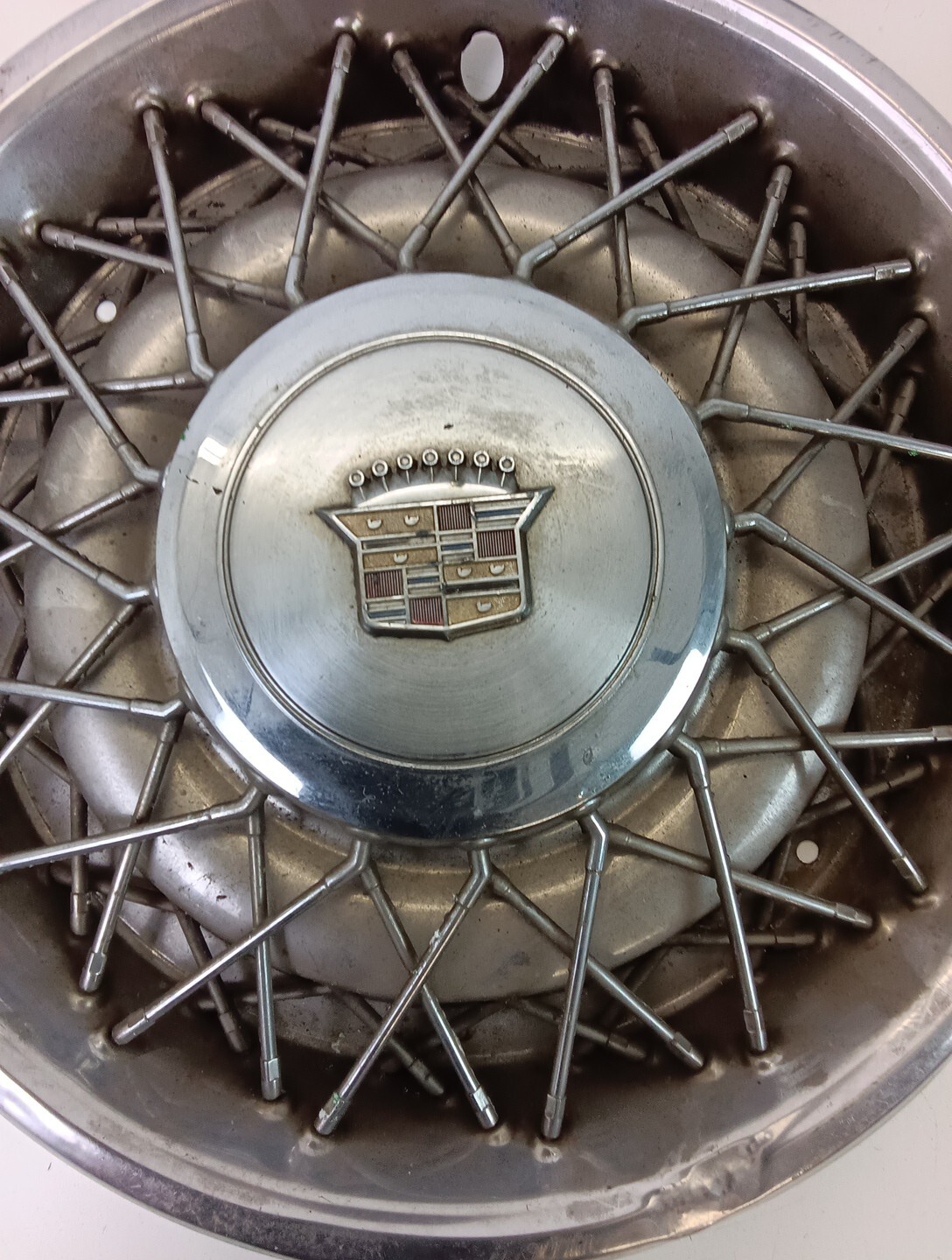 This vintage hub cap is a perfect addition to your Cadillac collection. It features a unique design that will surely catch everyone's attention. Made from high-quality materials, this hub cap is durable and long-lasting. It fits perfectly on your car's wheels and adds a touch of elegance to your vehicle. The brand of this hub cap is Cadillac, which is known for its luxurious cars and accessories. It is specifically designed for Cadillac cars and is a great way to enhance the look of your vehicle. The type of this hub cap is wire, which gives it a classic and timeless look. Give your car the upgrade it deserves with this vintage Cadillac wire hub cap.