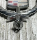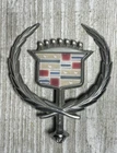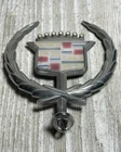 This vintage Cadillac wreath crest hood ornament emblem is a must-have for any collector of automobilia. Made in the United States, this silver piece is a beautiful addition to your collection. The intricate design and attention to detail make it a true work of art. This item is perfect for anyone who loves hood ornaments and emblems, especially from classic cars like Cadillac. It has been previously owned but is in great condition and ready to be displayed. Add it to your collection today! A1507SB