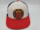 The hat seems best suited for smaller sized heads. Also has some stains on the front and underneath the brim as seen in photos. Vintage California Angels 25th Anniversary UII Mesh Trucker Snapback Hat Cap MLB. EACH ADDITIONAL HAT PURCHASED IS ONLY $1 ADDED SHIPPING!