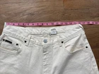 This product is a pair of Vintage Calvin Klein Jeans made in the USA with undyed cotton. The jeans have a solid beige color and a mid-rise fit, featuring a zip and button closure. The size is 36 waist and 34 inseam, with a straight leg style. Machine washable and perfect for all seasons, these Calvin Klein jeans showcase the brand's iconic style and quality craftsmanship. Perfect for men looking for a timeless wardrobe staple with a hint of vintage charm.