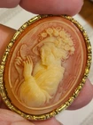 Oval cameo brooch approx. 1.75" x1.5" in good working order. I bought this about 30 years ago when cameos were very popular. It is very well made but I don't really know anything about it. It is not marked. I believe it is resin, not shell; the detailing is incredible. *** Please Read*** If you are interested in vintage items, there are many other things available in my listings so be sure to check them out! There is some good stuff, including signed and unsigned costume jewelry, Fenton and other glass, various collectibles at any given time. All items come from a smoke-free home and storage building. Happy shopping. No international shipping. I do combine shipping on multiple concurrent purchases, and I ship as cheaply as possible. There are boxes and bubble wrap in addition to postage, but I don't make any profit from shipping. Please do not bid unless you intend to honor your commitment to buy. Your purchase will usually be shipped within 4-5 days from the time your payment is received. It comes to you in a secure wrapping and jewelry is gift-boxed so you do not need to e-mail me to tell me how to wrap your item unless you have a unique situation. I will try to accommodate your requests so e-mail me with any questions.