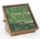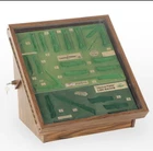 This vintage Camillus pocket knife salesman display case box is a unique addition to any collection. The wooden handle and glass display window make it a sturdy and stylish option for showcasing your collection of knives. The Tilt Counter feature allows for easy access to your collection and keeps your knives securely in place. This original piece is perfect for any collector or knife enthusiast. Dimensions are approximately 20.25 x 18.75 x 20. Very good overall condition. Some minor wear to lining which is consistent with normal usage and age. The cabinet case is from The American Wildlife Series.