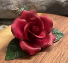 Stunning red rose with three leaves. Delicate and exquisitely crested red rose. Capodimonte porcelain made in Italy. Perfect condition as a gift for a loved one , or for yourself!