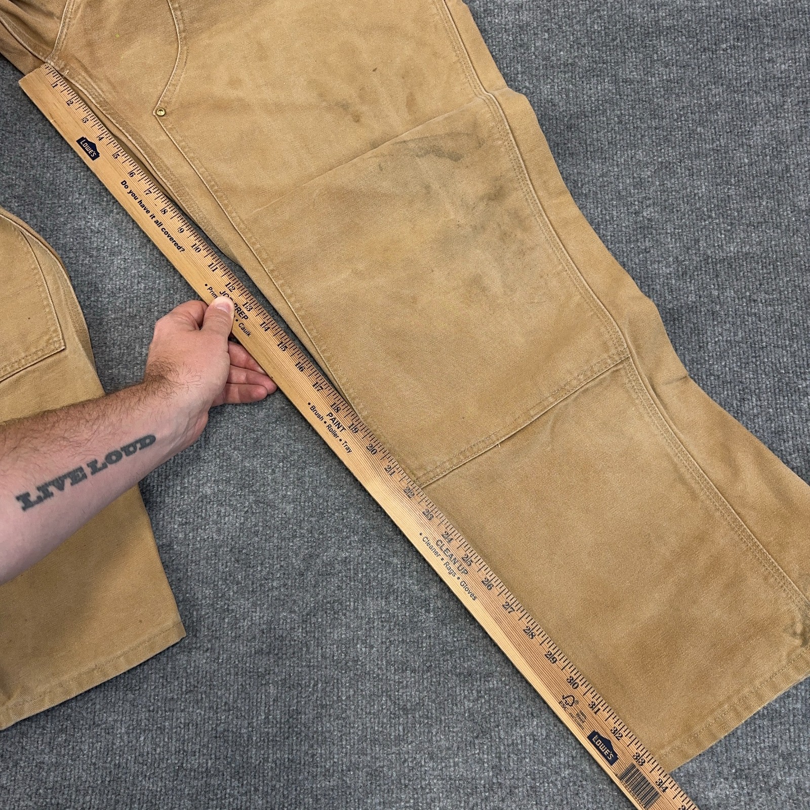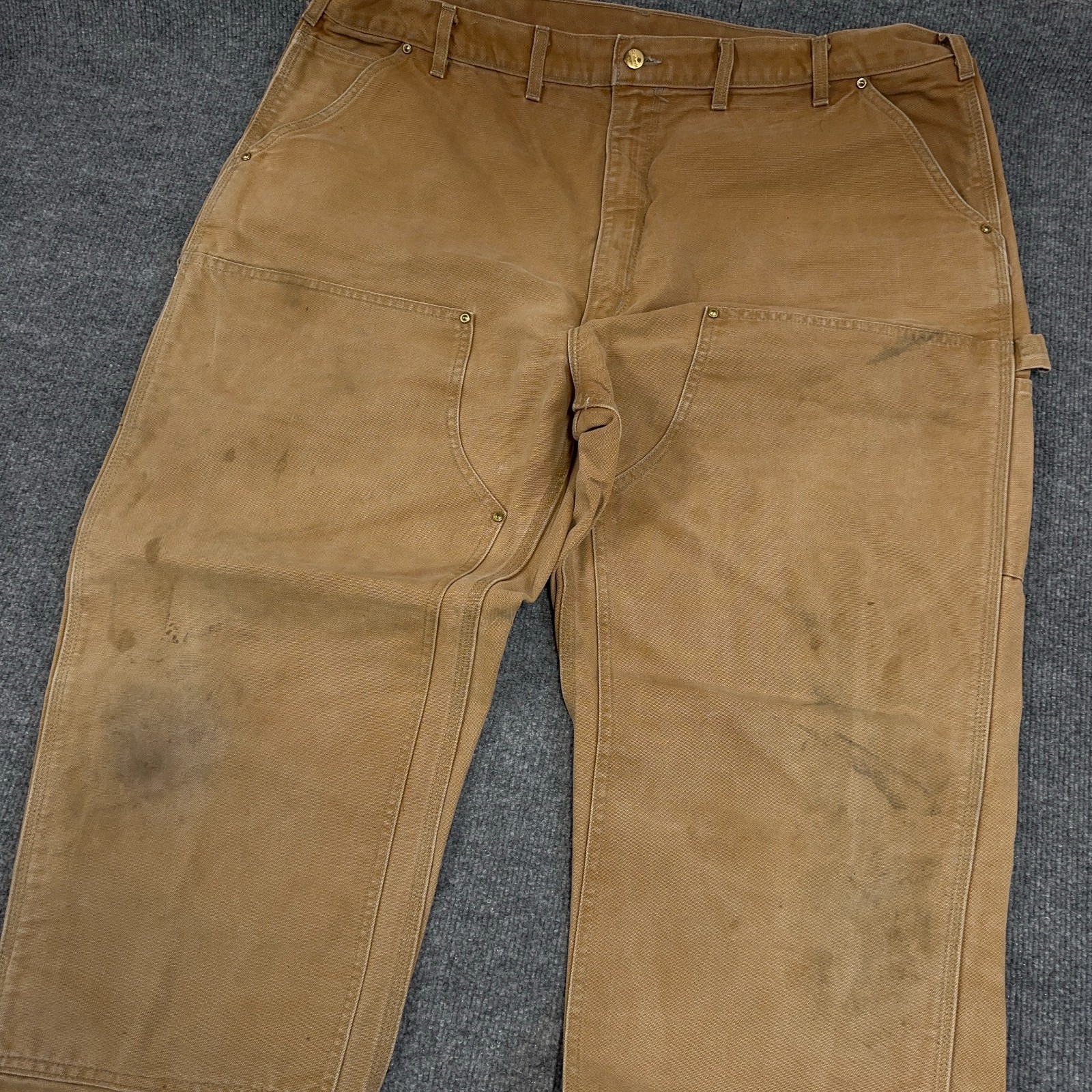Vintage Carhartt Pants Mens 44X34 Brown Double knee Front Loose Fit Made in USA In good structural condition with distress throughout as shown. Please see photos for measurements.